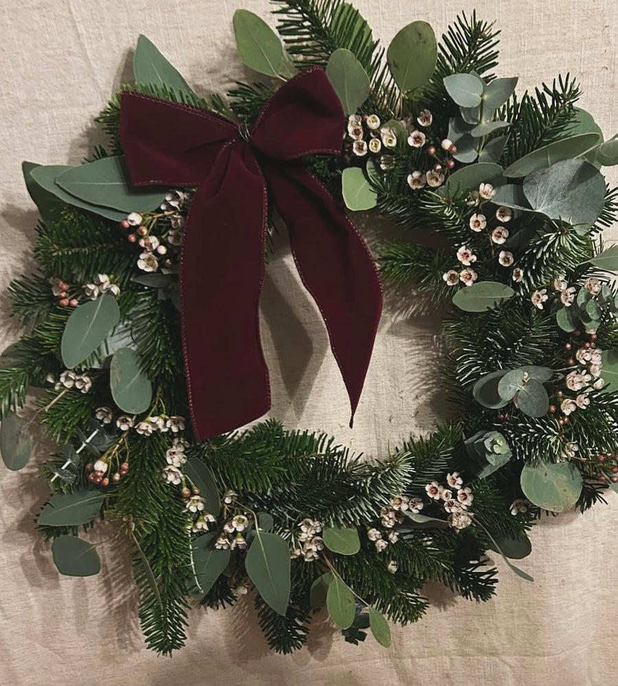 A cosy and luxurious evening of wreath making with fizz, laughter and fragrant foliage.